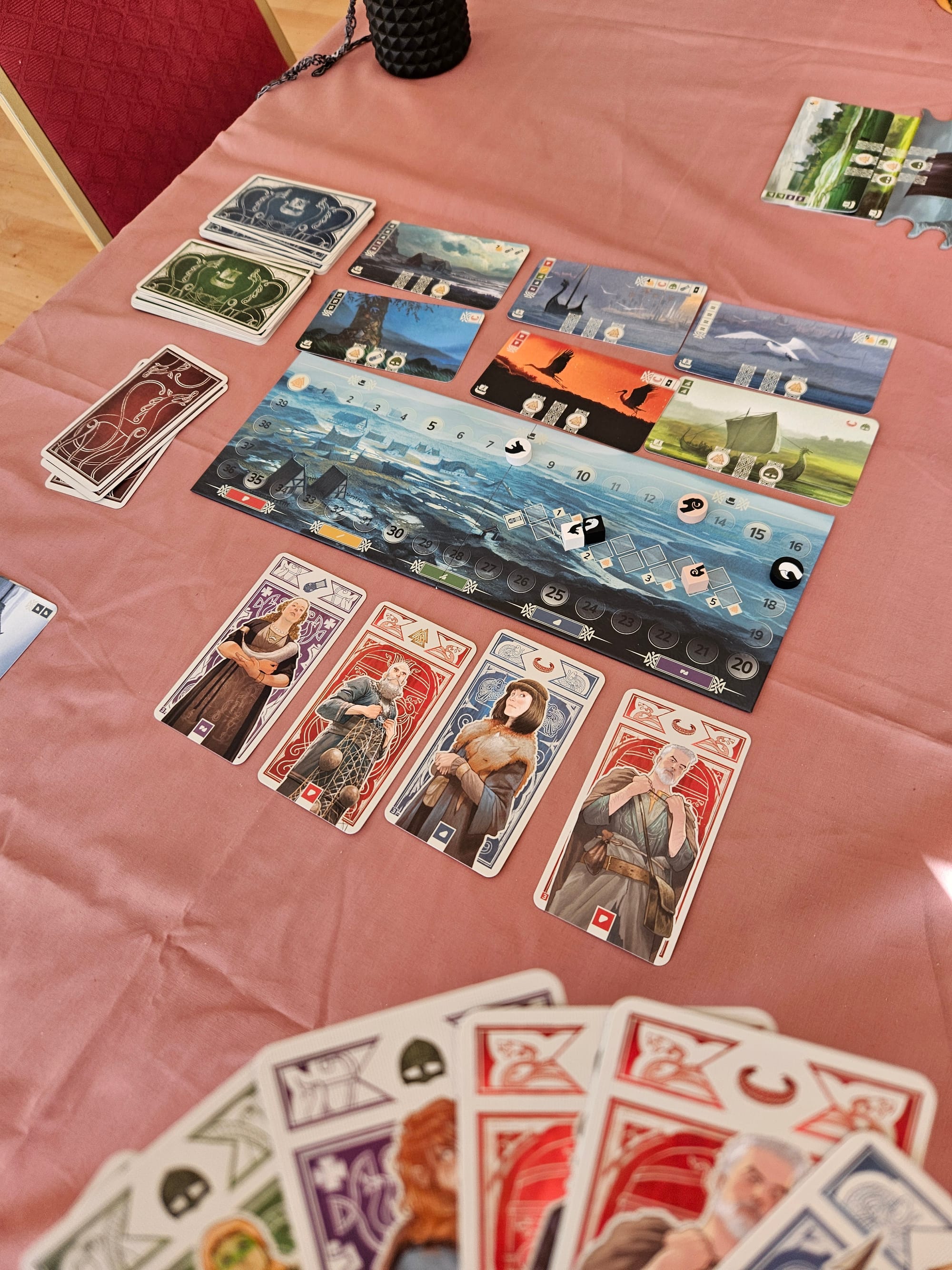 After the failure to save Middle Earth, players explored the intrigue of Courtesans—a clever stock market game dressed in the finery of courtly drama. Scheming for influence and manipulating the market made for some sharp tactical play. This was followed by Knarr, a compact yet rich game of Viking recruitment and seafaring. With streamlined turns and satisfying combos, it proved once again that big adventures can come in small boxes.