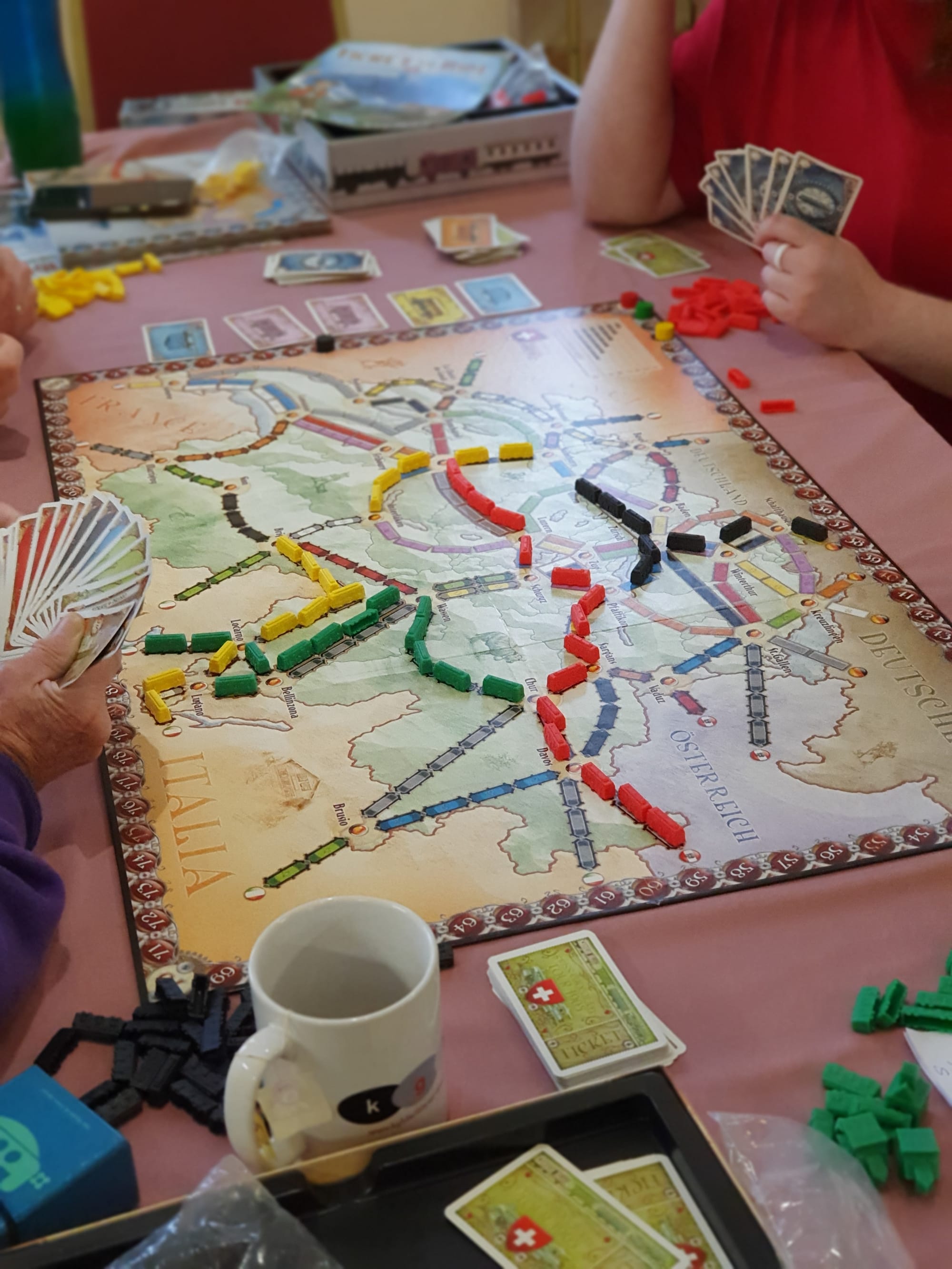 The day ended with games of Let's go to Japan, Ticket to Ride: Switzerland, Cosmoctopus and the cute looking push your luck game Spots.