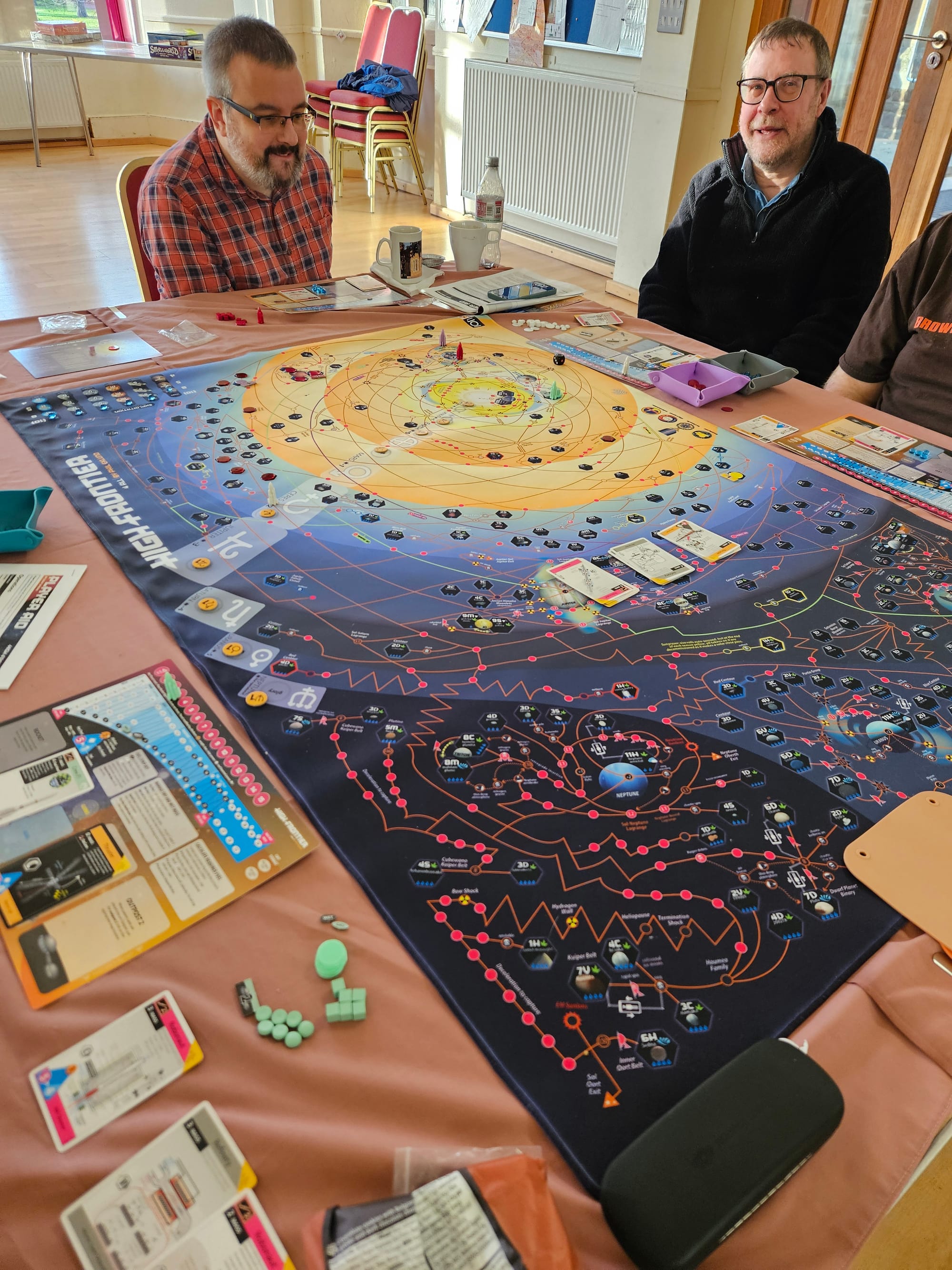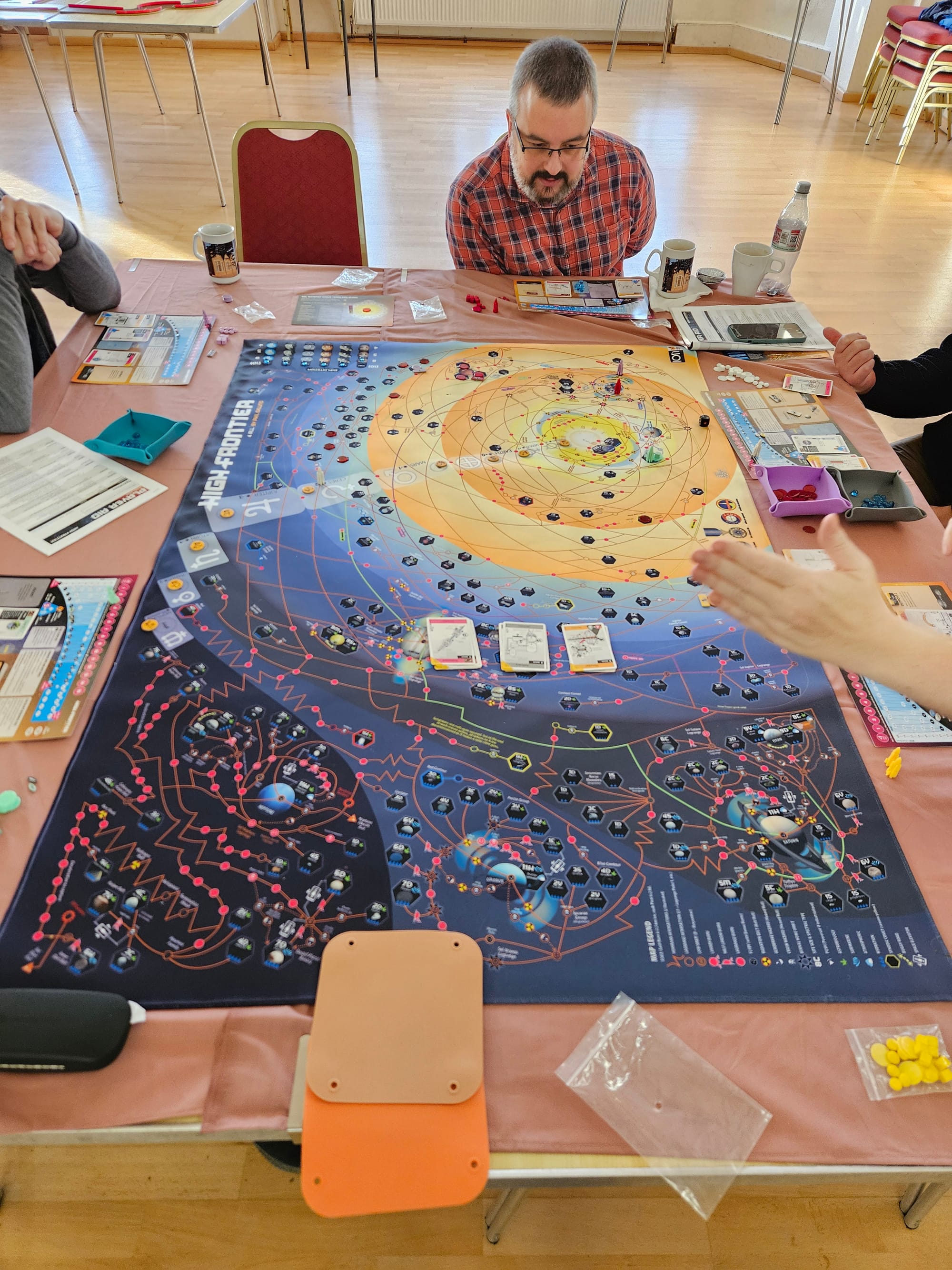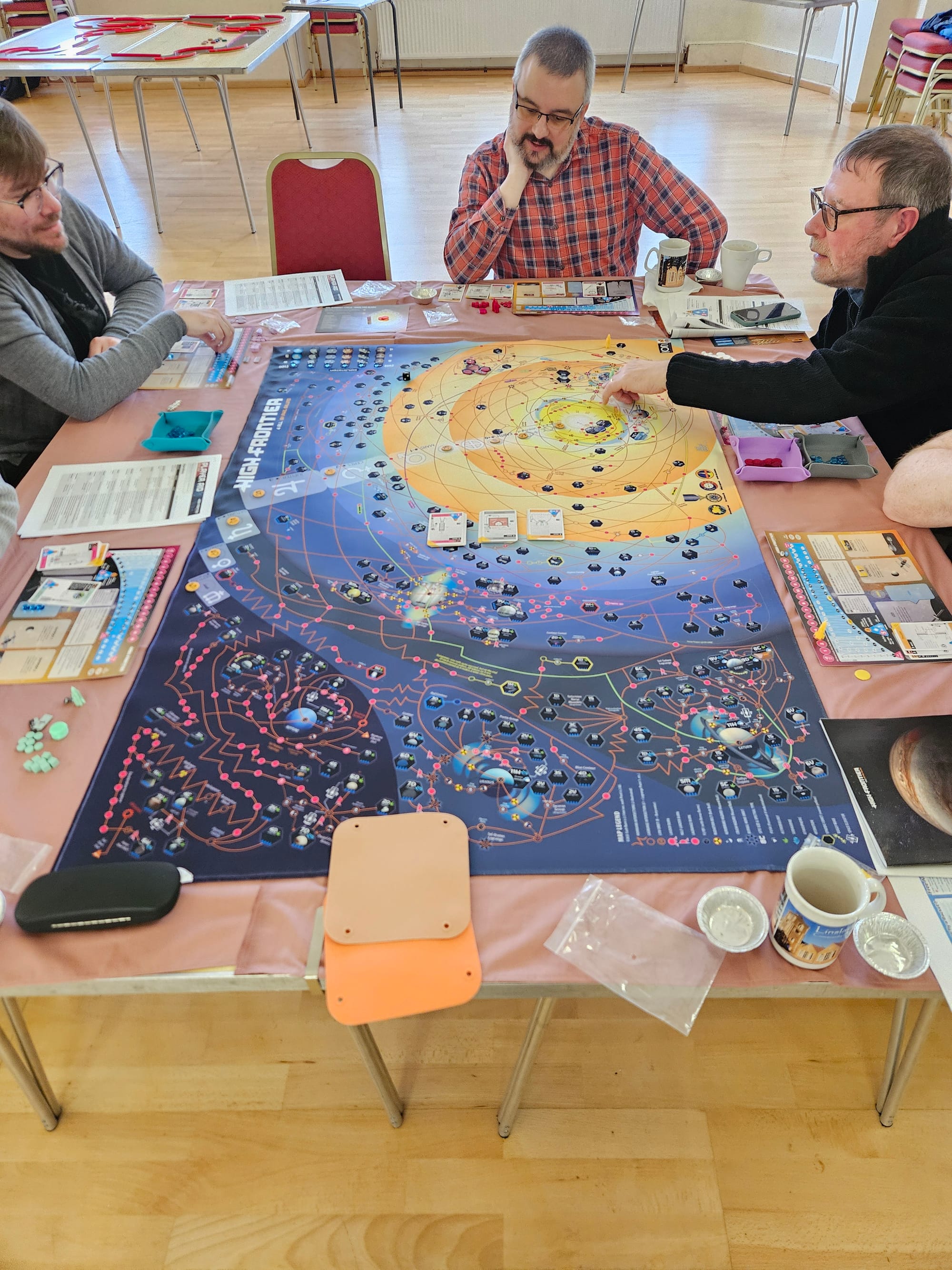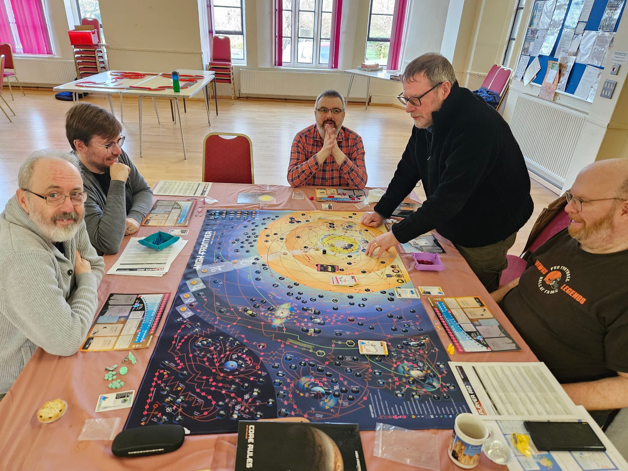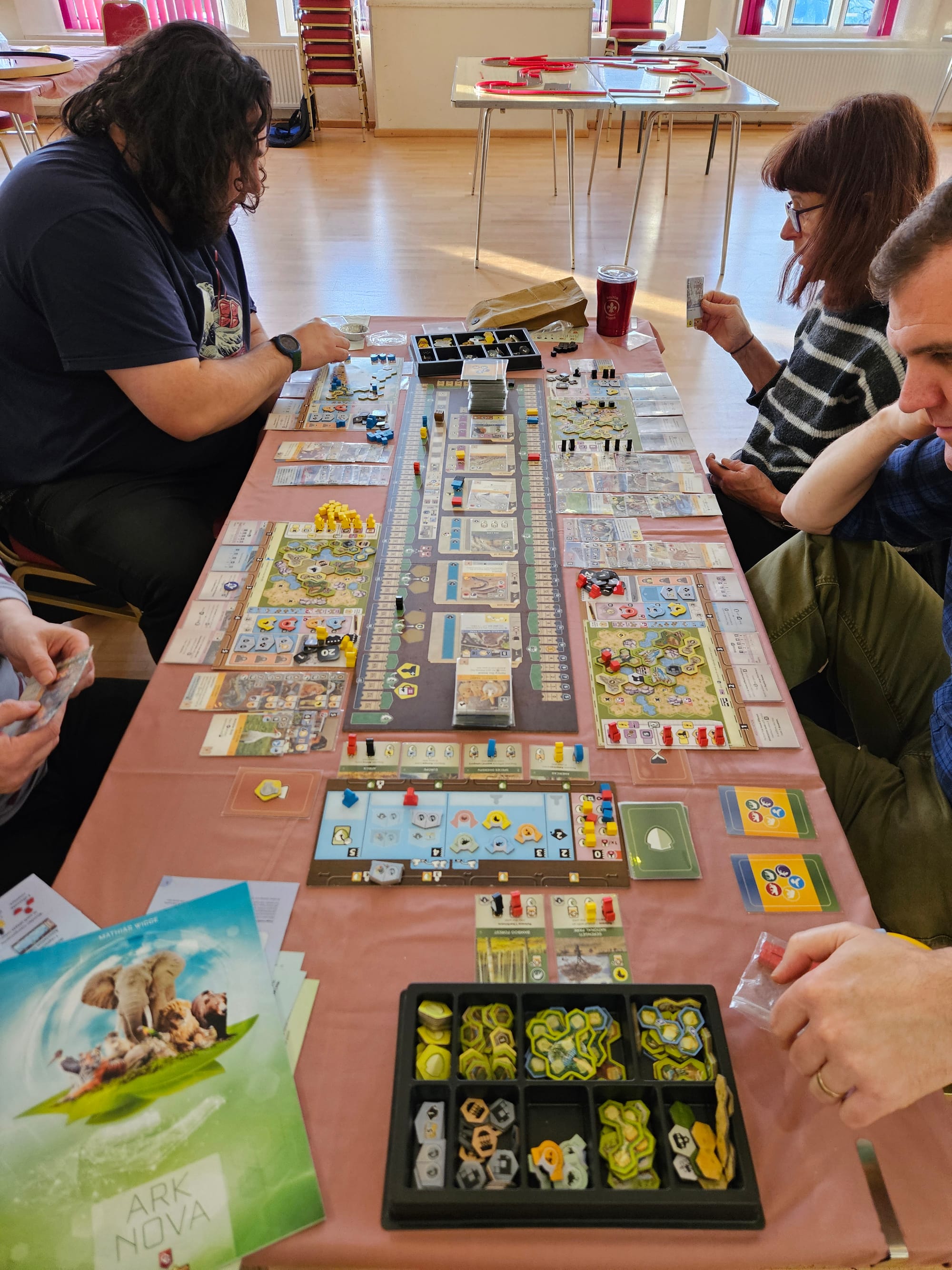 We kicked things off in style with two tables dedicated to big games. One group settled in with Ark Nova, carefully balancing conservation, zoo design, and long-term planning, while another dove into the sprawling, brain-burning depths of High Frontier, a game based around real world orbital physics. Elsewhere, things began on a lighter note with the adorable Pixies, before taking a sharp (and delightfully bonkers) turn into Cosmic Frog, where chaos, bold moves, and plenty of table talk ruled the day.