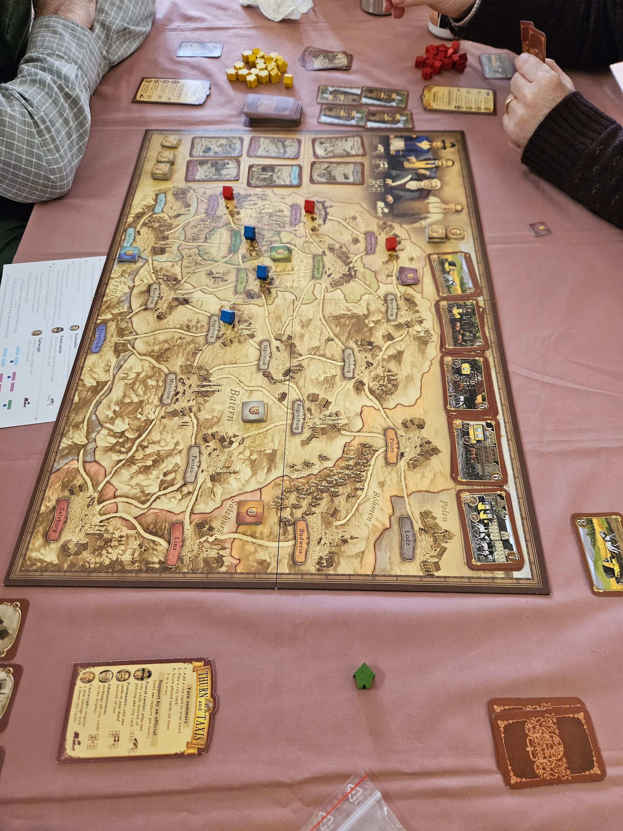 Later in the day, the classic German route-planning game Thurn and Taxis hit the table, offering a calmer but no less engaging challenge. The meetup wrapped up with Turncoats, a beautifully handmade game whose stripped-back elegance will appeal to fans of The King Is Dead or A War of Whispers. Its simple rules and shifting loyalties made for a tense and memorable finish.